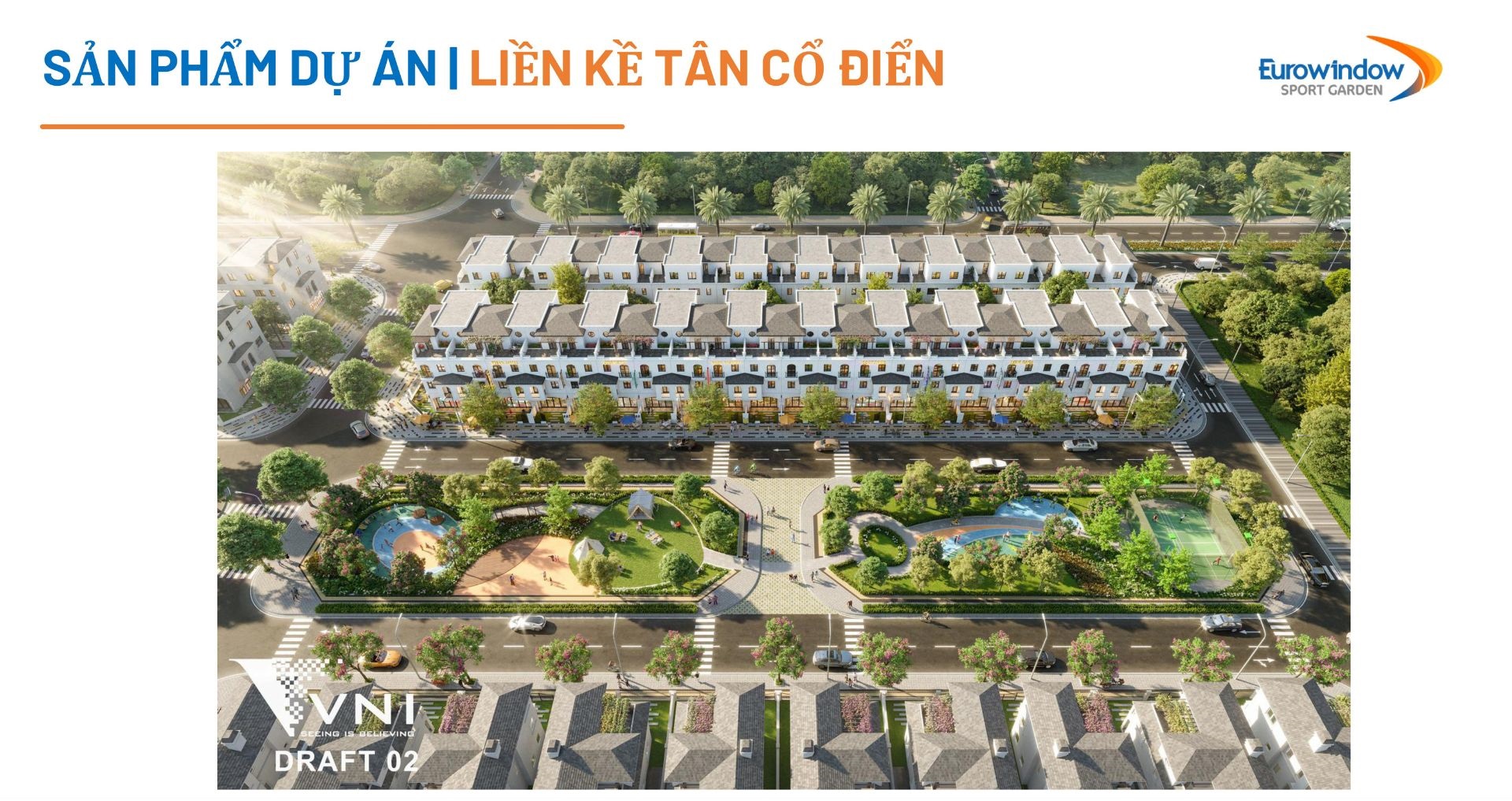 Tại Eurowindow Sport Garden, các căn liền kề được thiết kế với sự kết hợp tinh tế giữa hai phong cách kiến trúc độc đáo: Tân Cổ Điển và Địa Trung Hải. Điều này tạo nên sự đa dạng và phong phú, đáp ứng nhu cầu thẩm mỹ đa dạng của khách hàng. Mỗi căn liền kề đều được tối ưu hóa không gian, mang đậm dấu ấn sang trọng và đẳng cấp, đồng thời thể hiện sự khác biệt và độc đáo, phù hợp với những người tìm kiếm một không gian sống đặc biệt.